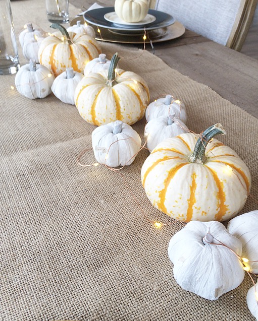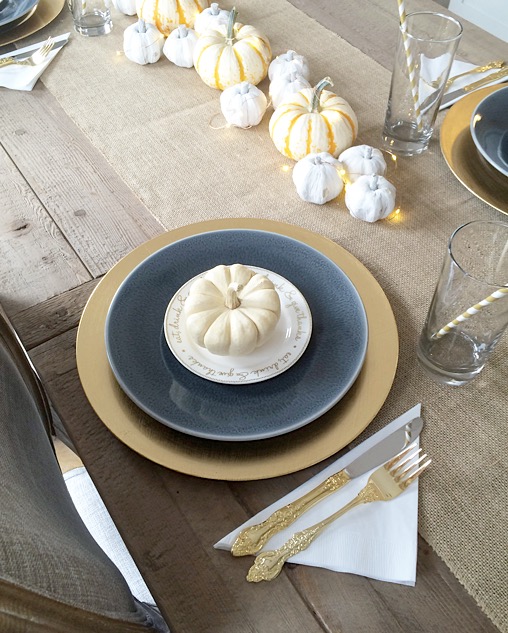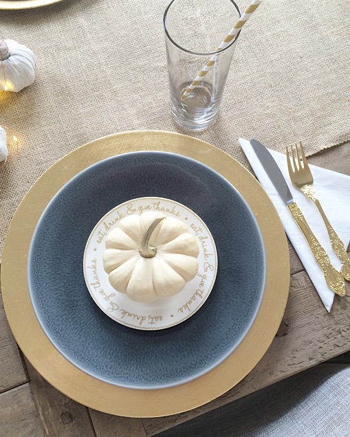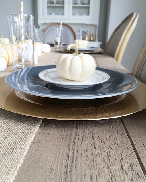 My hubby and I decided to host a small dinner for his family at our place this past Thanksgiving weekend. A few months back I had won a turkey through work (random, I know) and had stowed it away in the freezer for safe keeping. Both my husband and I have never prepared a turkey before so we figured a free one was a good place for us to learn, as there was no loss if it didn’t work out! While my hubby managed the turkey (and most of the cooking I might add) I got to work on creating the perfect Thanksgiving tablescape.