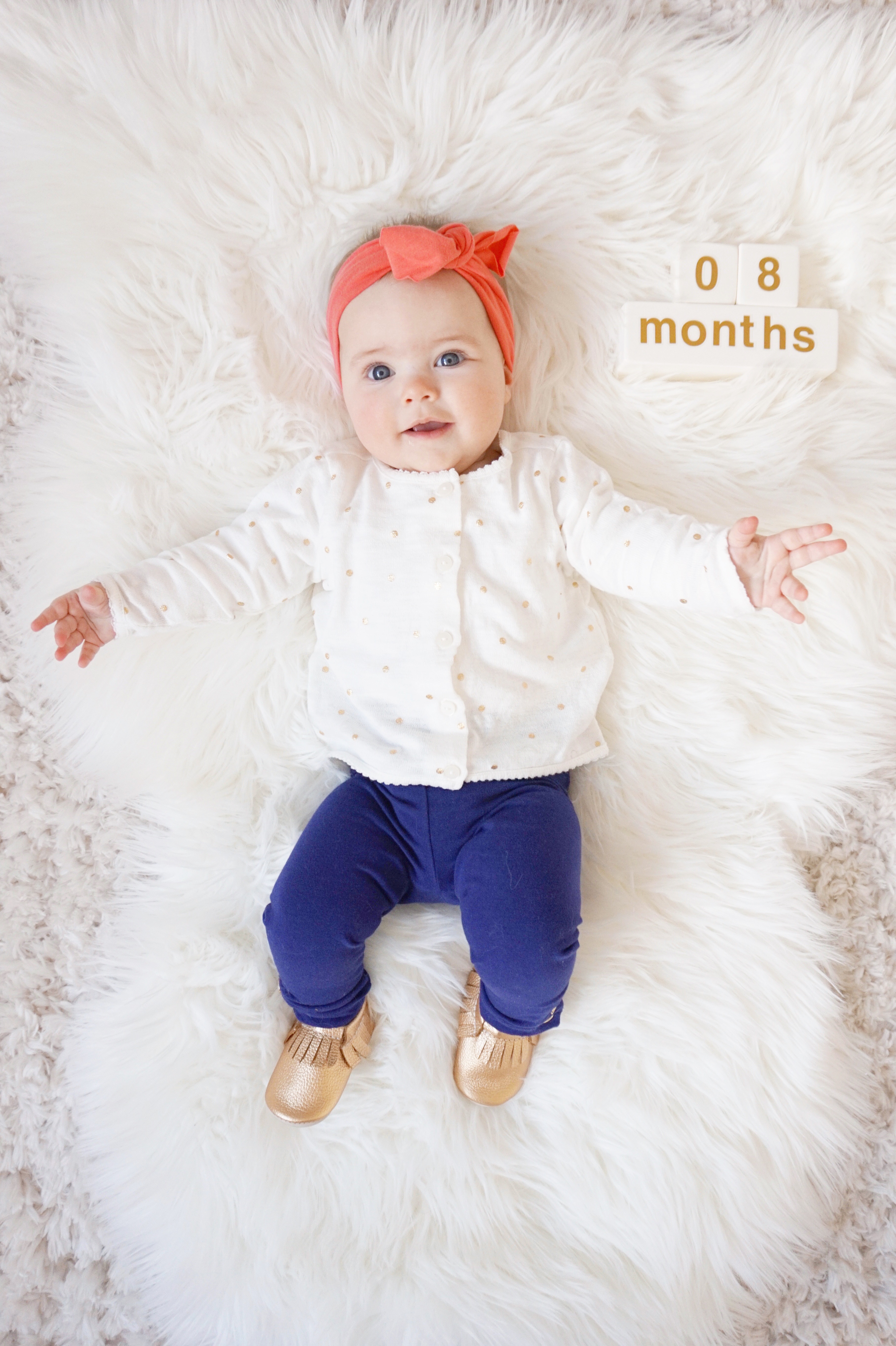 Today marks 8 wonderful months of having our sweet Emsley in our lives! I have recently mentioned on Instagram how each milestone or month that passes I find myself saying “this is the best part” only to find myself saying it again as a new milestone or stage emerges. This wonderful, tiny human being has filled my heart with great amounts of joy as she grows and develops into such a fun, silly, and exciting girl. I am so grateful each day of this motherhood journey as it only keeps getting better and better!