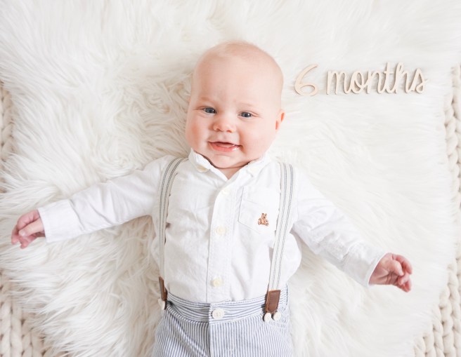 6 months old! A whole half a year! I remember when Ems turned 6 months old; it felt like it happened much much slower than this! I’m half way through my maternity leave with Ever and loving every minute of being home with my babes. I find the days go by so much faster with having two in the house. Since I’m breastfeeding still we haven’t sent Everton off for a sleepover yet so the odd days that Ems goes alone to one of her grandparent’s houses, I find the day drags on a bit more having just a baby in the house. I love watching the interactions between them and having a busy toddler running and talking about!