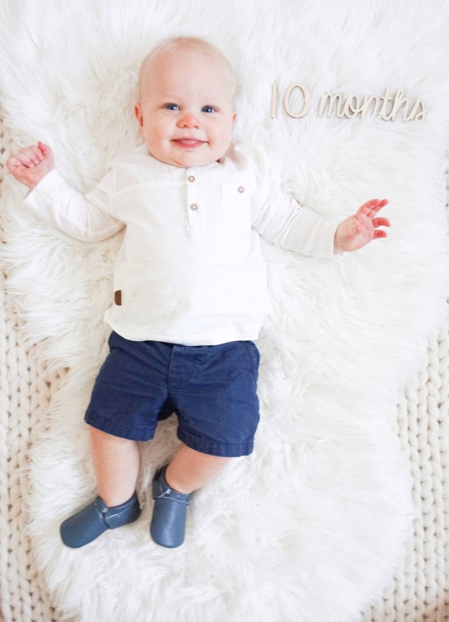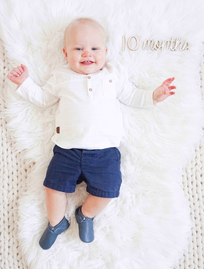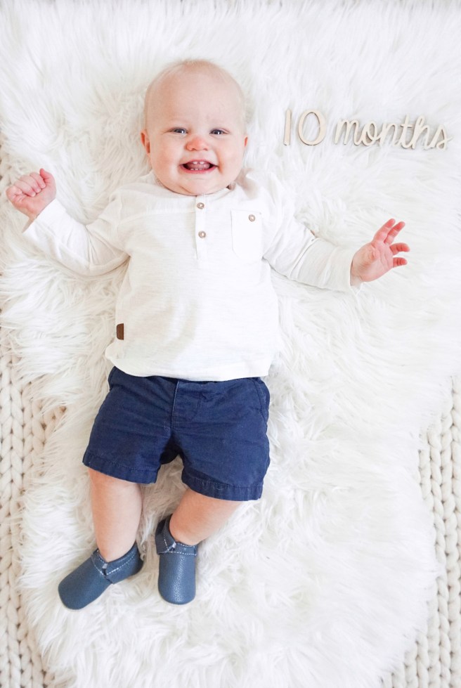 The biggest change during month 9-10 was Ever taking his first few steps! He mastered two steps for a few weeks and then quickly increased to four by the end of the month! His sister didn’t take her first steps until 13 months old so him being only 9.5 months when he started to walk seemed quite early to me!