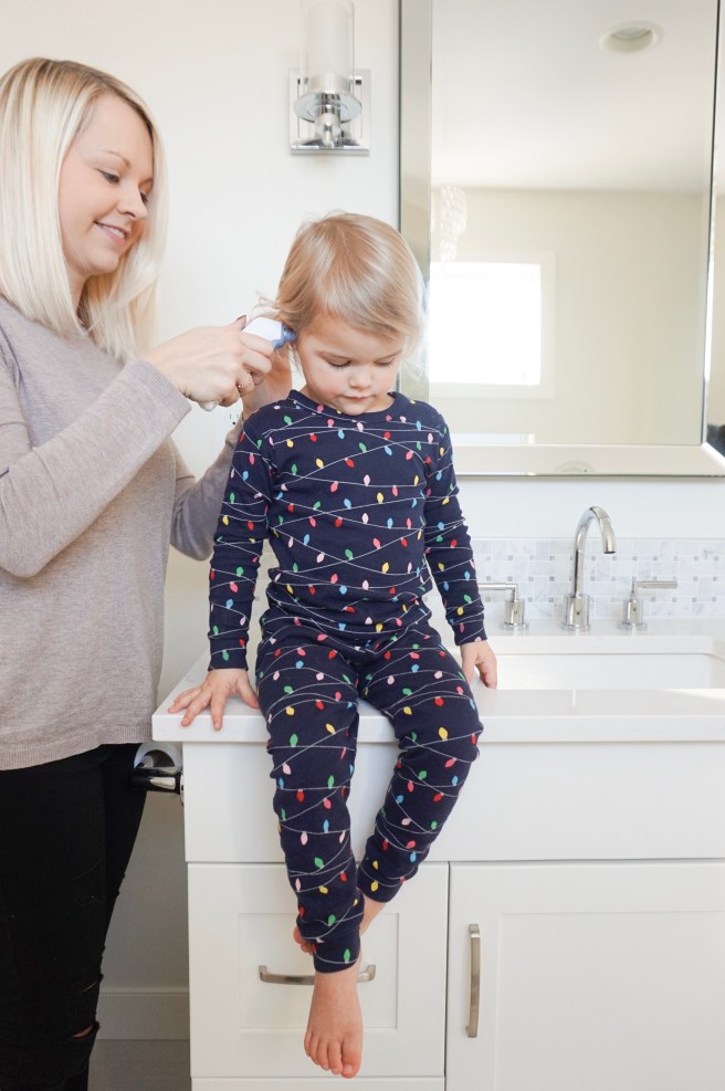 When a cold or flu strikes, I always have my thermometer handy. I’ve been using a Braun ear thermometer since my daughter was born and have been very happy with it. When I was offered to try out their newer version, the Braun ThermoScan®7 with Braun ThermoScan® disposable lens filters, I was eager to give it a go! The main difference with this one, compared to the one I already own, is the Age Precision® feature. So many times, I have found myself googling if my child’s temperature is too high based on their age; since a concerning temperature varies as a child grows. For example, what is considered a high temperature for a newborn might be considered a moderate temperature for a toddler. The Braun ThermoScan®7 offers an Age Precision® button which allows you to set your child’s age before you take their temperature. By doing this, the temperature is then interpreted by the thermometer by using a colour-coded fever indicator – green (normal temperature), yellow (elevated temperature) and red (high temperature) taking the uncertainty out of what is a concerning temperature for your child based on his/her age. What also makes this thermometer great is its accuracy. Since the tip on a thermometer can cool down when not in use, it can lead to inaccurate temperature readings. The Braun ThermoScan®7 has a tip that warms up before being used to ensure it is accurately reading your child’s temperature. Since a cold tip could mean a reading that is lower than the actual temperature, it could lead to improper treatment, so this feature is extremely important! I also always take the temperature in both of my kid’s ears, as the temperature between the two ears often varies by at least one degree, so this helps me get a more accurate reading.