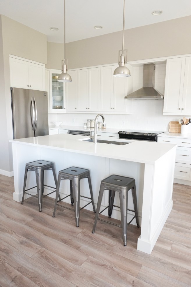 One of the decor choices I made for our house that I didn’t love from the beginning, was our pendant lighting above our kitchen island. I have always enjoyed a good oversized light fixture and have felt that the ones I picked out for our kitchen island are too small in size, in terms of the size of the island and overall space. I still love these lights for their colouring and quality and I think they would be great in a different space with a smaller kitchen island or even above a basement bar. But, for our current island which is about seven feet long, I feel a bigger style fixture would look better! I am always inspired by designers like Monika Hibbs, Jillian Harris, Tori Wesszer and Becki Owens and have decided it is time to try out something new!