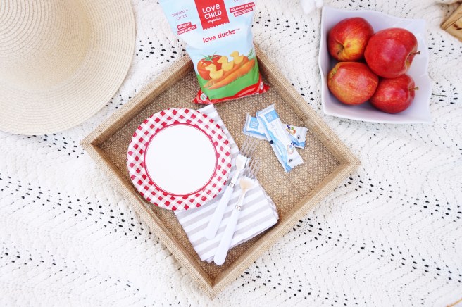 If you follow me on Instagram, you’ll know that we’ve been tackling potty training over here…each day at a time.. One, of the few downsides to potty training is that it has led to many days of isolation, being confined within our home, forcing this momma to get creative. On the not so great days outside, the go to recently has been having indoor picnics in our living room on a blanket, but since the weather turned warm again, getting outside became a must! I decided to create a little outdoor picnic in our backyard for Miss Lace to find when she woke up from a nap last week. She absolutely LOVED the concept of it and has been asking for more picnics since! When Love Child Organics offered to send me some samples of their toddler snack products, I instantly agreed! We have been a Love Child fan since Ems started solids, buying their purees and toodle O’s. More recently, Ems is loving their lil’ shake drink in the chocolate flavour which is packed with protein. As a parent, I love the fact that Love Child uses only 100% organic ingredients, with no added sugars. Oh, and the fact that they are Canadian based doesn’t hurt either!
